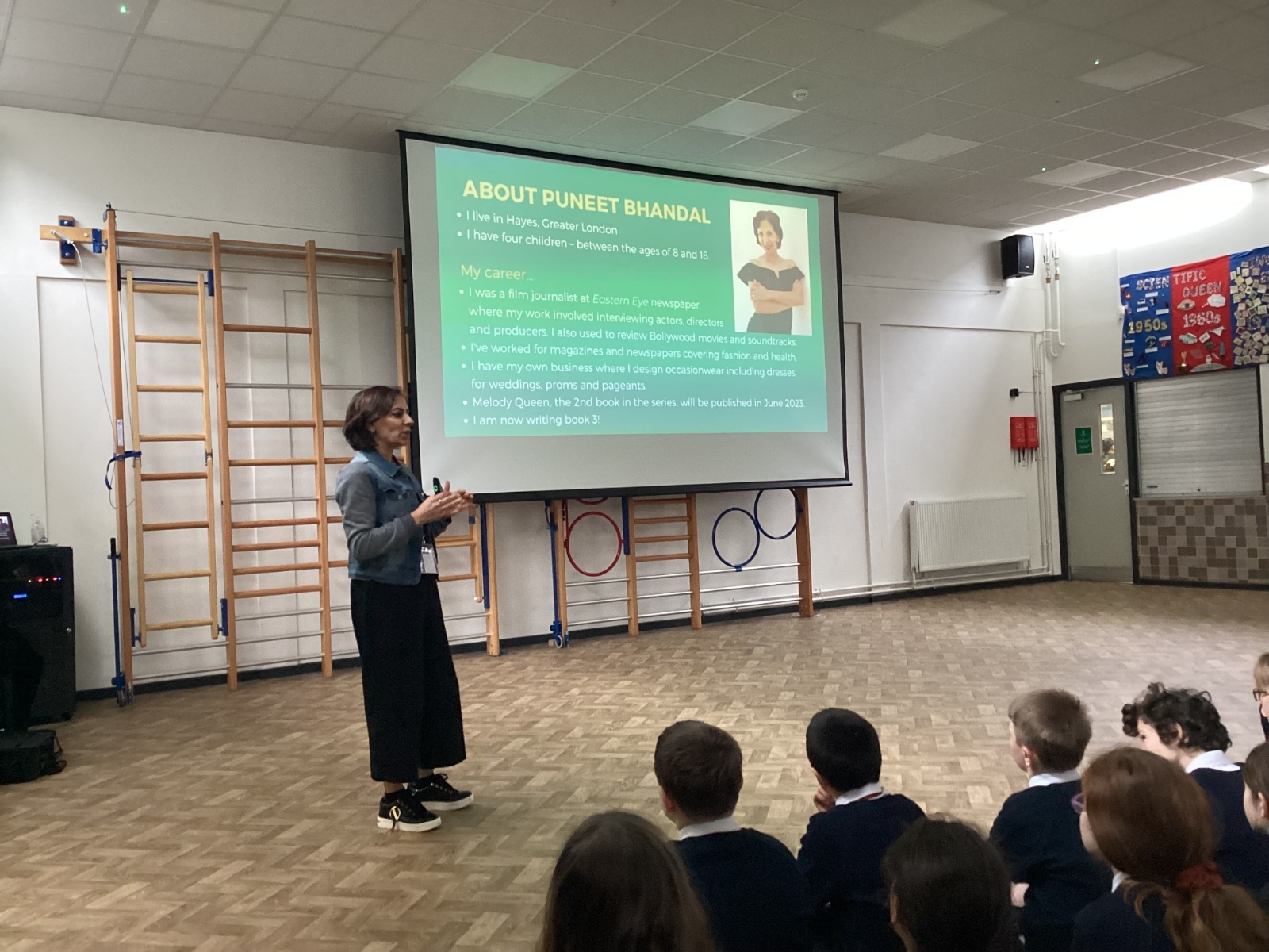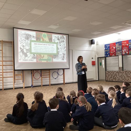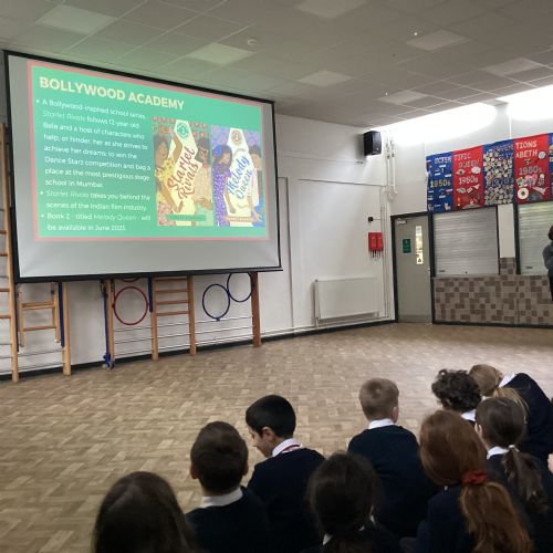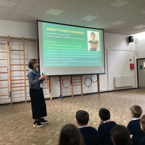 KS2 enjoyed a visit from children's author Puneet Bhandal who uses her experiences working in Bollywood to write books about Bella and Monica, pupils in a Bollywood stage school. We really enjoyed hearing about how much time it takes her to write her books and how the books are illustrated. Puneet even got us up and dancing Bollywood style!