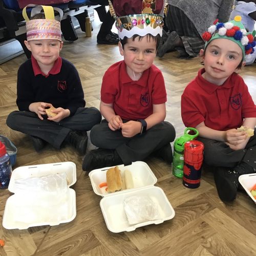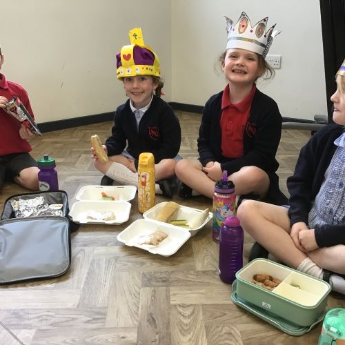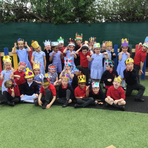 The children enjoyed celebrating the Coronation today with a picnic and their home made crowns.