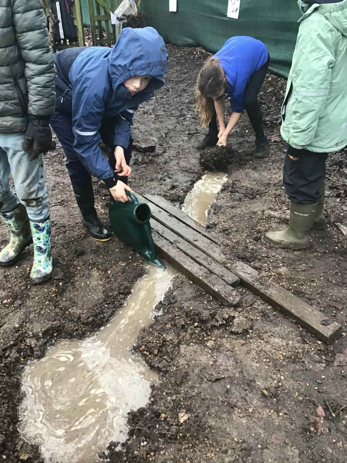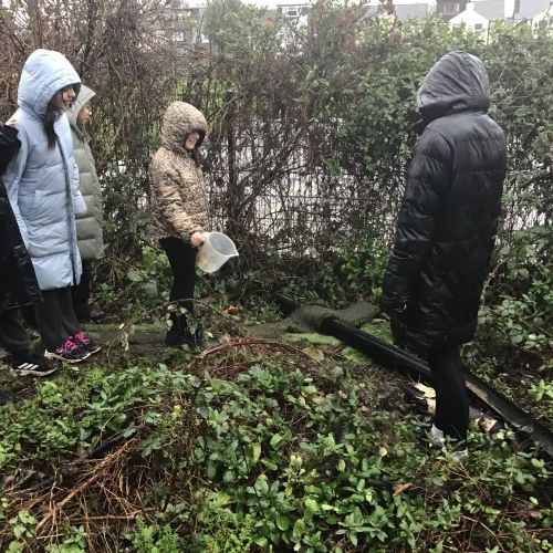 The Year 6 classes may have had a few wet afternoons outside at Forest school, but that did not stop them from exploring. They built dens for their little goblins and even began to dig up some trenches for a stream to be made going from the pond to the fence. Muddy and wet afternoons had by all.