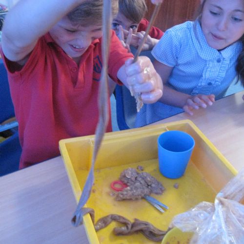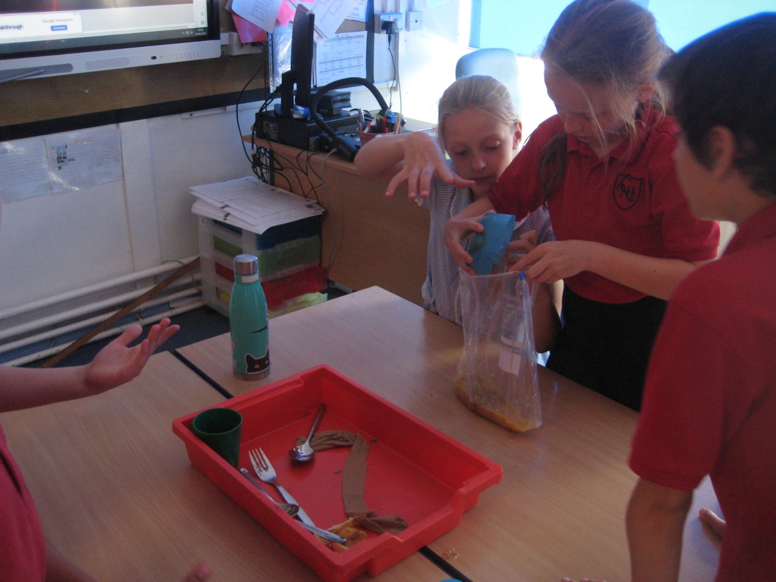 Year 4 have been exploring the question 'What happens to my breakfast?' using every day objects to represent the different parts of the system.