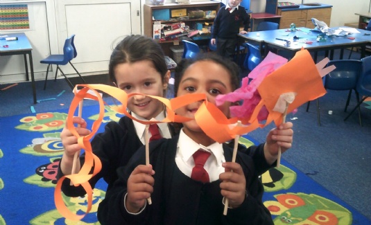 Yellow class showed their acting skills by taking part in a drama workshop this week. The workshop was based on 'The Magic Paintbrush' by Julia Donaldson, they entered into the main character world by recreating her paintings, even forming a whole class dragon. They finished with a craft activity and made their own dragon to take home. Well done Yellow class. For more photos click here.