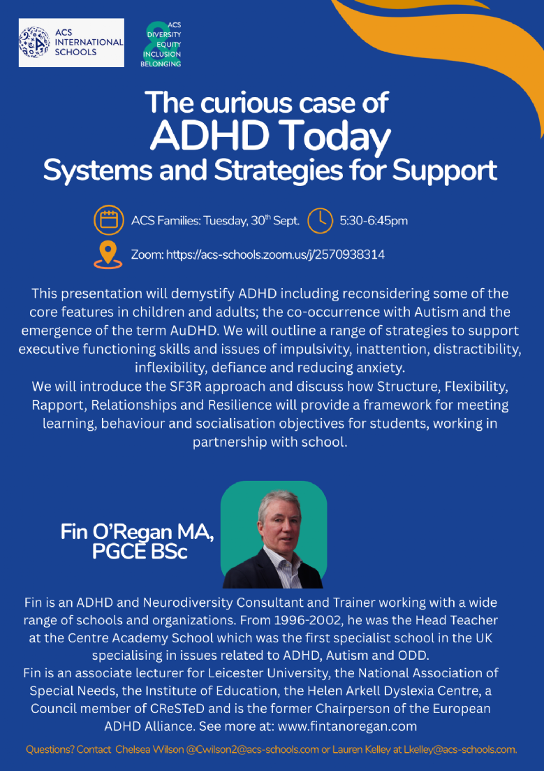 Please see information regarding a parent presentation about ADHD. If you would like to attend this virtual session, please access through the zoom link.
